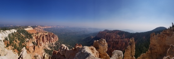 A panoramic view of the whole park from Rainbow Point. There was some smoke from wildfires, so it looked like we were at the very ends of the Earth.