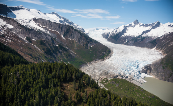 Mountains meets ice meets the sea inside Tongass National Forest near Juneau, AK.