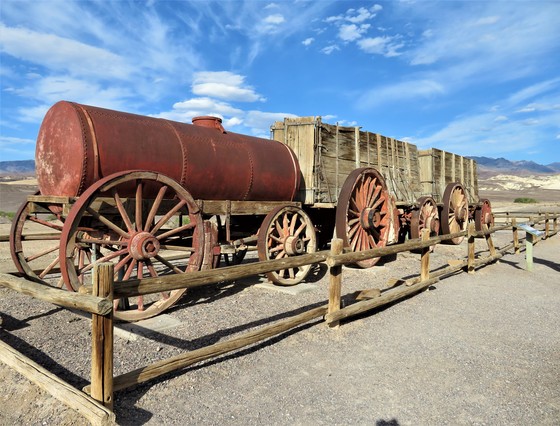 The Harmony Borax Works and its massive twenty-mule team wagons used to haul borax across the desert during the 1800s.