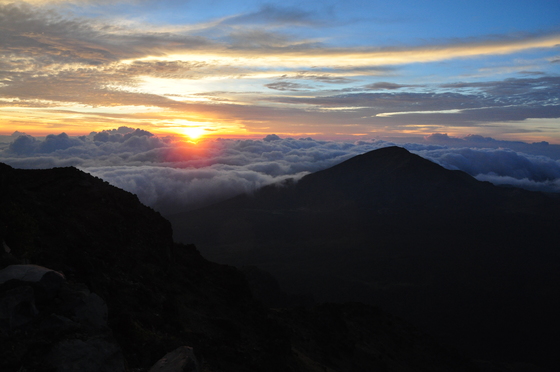Sunrise was delightful from the Kalahaku Overlook just down from the Haleakala summit. We were completely alone there. Afterward we hiked into the caldera.