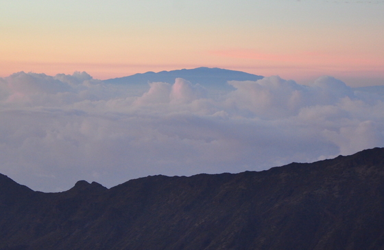 Sunrise was wonderful from the Kalahaku Overlook just down from the Haleakala summit. Mauna Kea on the Big Island just rose up from the clouds.