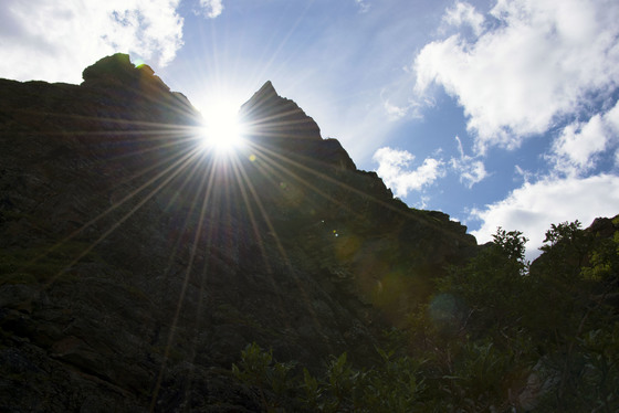 It took some climbing to get at the right angle to catch this starburst in the saddle, but it was well worth it!