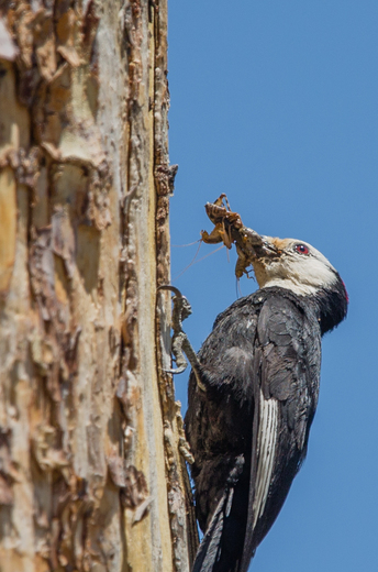 White headed woodpecker with food