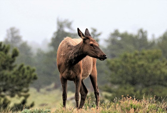 Description - Elk on a Misty Day There were so many elk in the park, but this one caught my eye. She is beautiful! We visited on a rainy day, a little mist and fog, with even a trace of snow falling. I love my photo because I could see a little of the rain and mist in it. We visited this year in May.