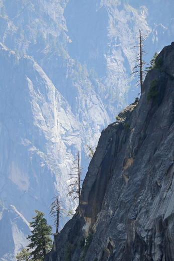 Abstract view across Yosemite Valley from the trail down from Yosemite Falls. June 25, 2018.