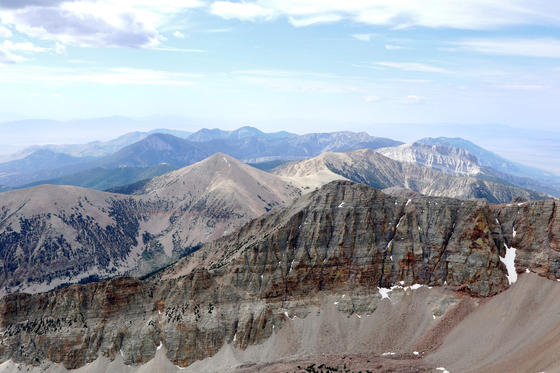 View toward the south over the Snake Range from the summit of Wheeler Peak. July 8, 2018.