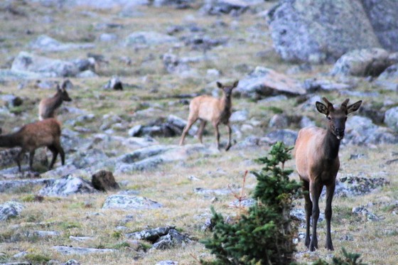 Driving through the park we found a large herd of elk eating. There was a bride and groom up on the hillside behind them taking pictures. It was a beautiful sight!