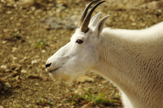 Peaceful mountain goats caught moving between peaks. Great to get close up shots of these critters with the telephoto lens