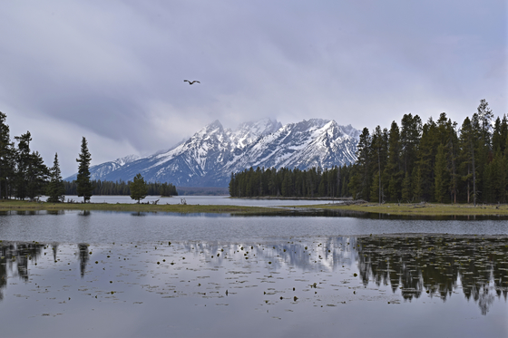 Tagged: grand teton mountain bird landscape scenery snow water tree evergreen