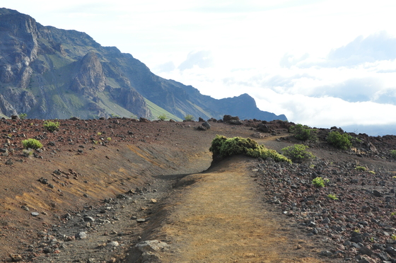 After watching a beautiful sunrise, we hiked down into the Haleakala caldera along the Keonehe'ehe'e (Sliding Sands) trail and out the Halemau'u trail.