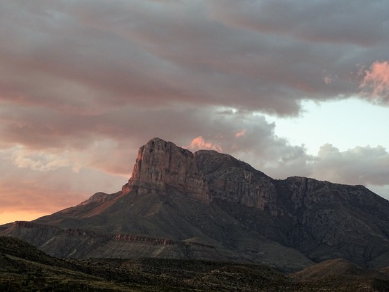 Guadalupe Mountains National Park with sun setting behind El Capitan.