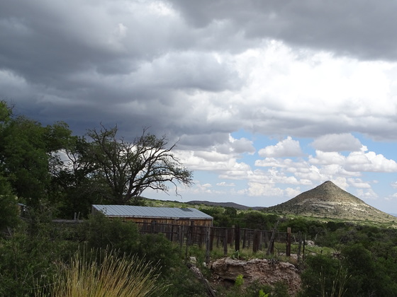 View of rain clouds coming in at Frijole Ranch and Nipple HIll at Guadalupe Mountains National Park.