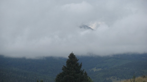 Truchas Peak behind a wall of rain clouds