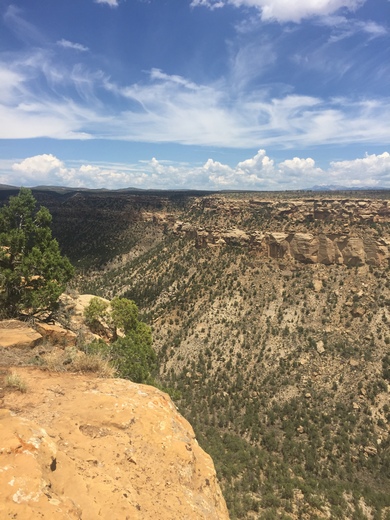 Clouds casting shadows over Mesa Verde National Park. See the decline of the life of trees due to the fires.