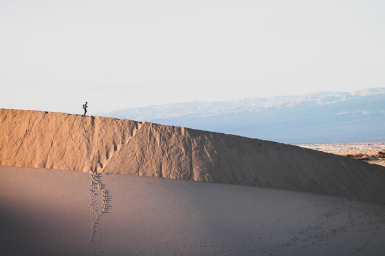 A person traverses one of the Mesquite Flat Sand Dunes in Death Valley National Park.