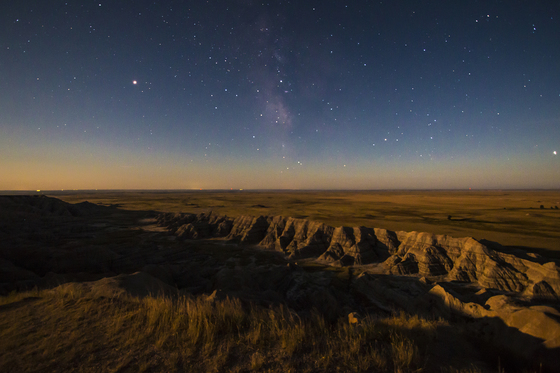 Starry night in the Badlands national Park in South Dakota