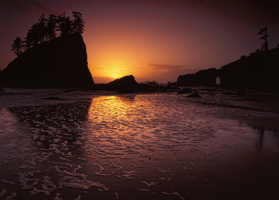 Coast line on the Olympic National Park shaped by Pacific Ocean.
