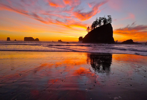 Perfect sunset at low tide, Olympic National Park