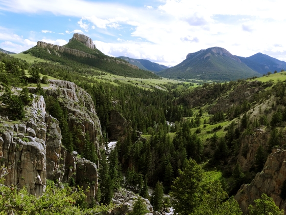 This is part of the Chief Joseph Scenic Byway (also called Wyoming 296), which is a federally-designated 46-mile scenic byway linking Cody, Wyoming to the Beartooth Highway and the northeast gate entrance of Yellowstone National Park. It follows the route Chief Joseph took as he led the Nez Perce Indians out of the Yellowstone National Park area and into Montana in 1877 in their attempt to flee the U.S. Calvary and escape into Canada. The scenic road winds through the Shoshone National Forest.