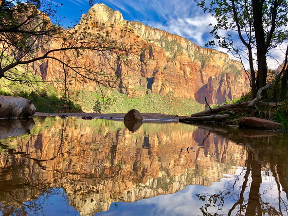 Reflections from Zion Canyon walls in the lower Emerald Pools
