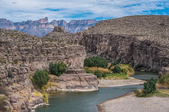A view of the Rio Grande from atop a ridge along the Hot Springs Trail, also with a view of the Sierra del Carmen mountains in the distance.
