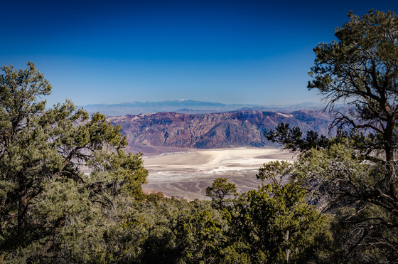 View of Death Valley floor and snow-capped Telescope Peak from Wildrose Peak trail
