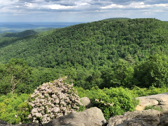 Mountain vista containing blooming mountain laurel