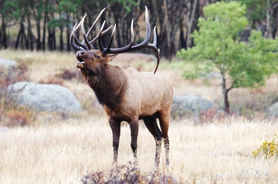 The fall rut was in full swing. This huge 6x7 bull had nearly black antlers from rolling in the mud to impress the ladies