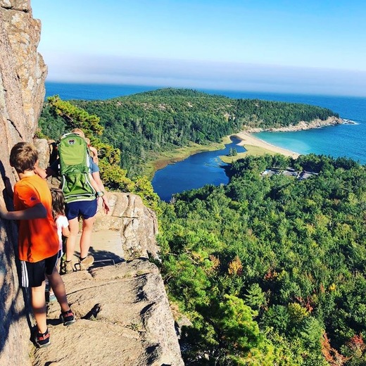 Today, we accomplished our greatest hike to date. My kids have been working their way up to this one for years and so have I. They have energy for days, but they also have to be keenly aware and take it slow. For me it was not just the physical task of a vertical climb with a toddler on my back, but the emotional task of not having a meltdown from anxiety with heights. I wouldn’t say I’m afraid of heights, but I’m afraid of them with my kids. But I also realize the benefit of being there alongside them while they learn to be safe hikers. They learn about their own bodies and what they can and cannot do. We worked hard together to conquer fears and push our bodies to do something big. This was a mostly vertical climb. The early parts of our hike were safe for Rory to be out of the carrier. You should have seen him rock scramble before we got to the ledges and on the way back down. One year olds can hike, too. This was one for the record books. What an incredible welcome to Acadia National Park.