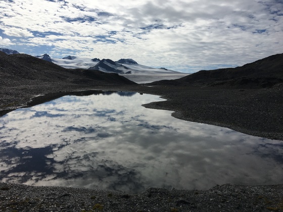 A reflective pond near the top of the Harding Icefield trail