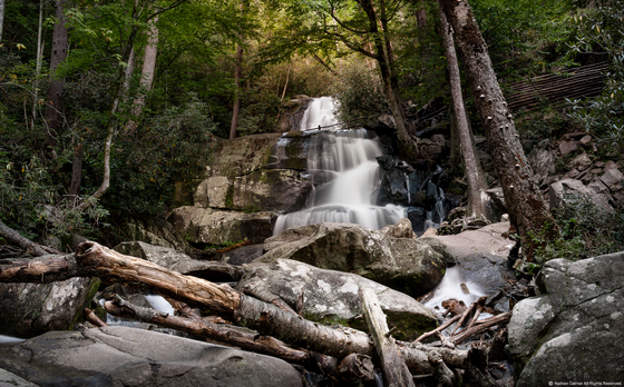 A beautiful double waterfall in the smokey mountains of Tennessee.