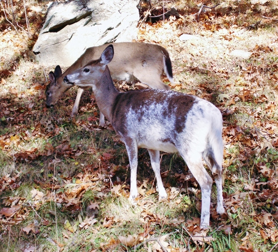 Piebald Whitetail Doe on the Skyline Drive in Shenandoah National Park was with a normal whittail.