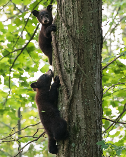 I came across these two cubs and their mom soon after entering Shenandoah National Park. The mom sent these two cubs up a tree and guarded the base of the tree. I kept my distance for the sake of safety, but was able to zoom in and get this shot of the cubs. I imagine the one on the bottom thinking "Please don't fall."