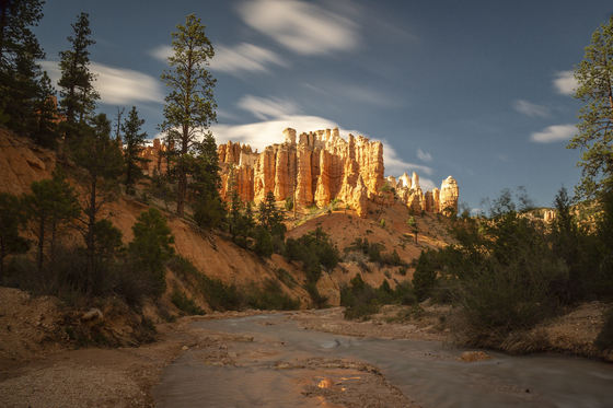 Flowing water and clouds. Along Mossy Cave hike in Bryce National Park.