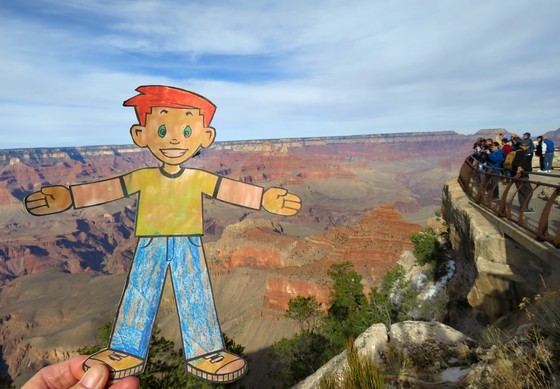 Flat Stanley is a school project that visits friends and family around the world to teach young children about customs, traditions, and scenery. He really enjoyed his visit to the south rim of the Grand Canyon and was amazed along with the other visitors.
