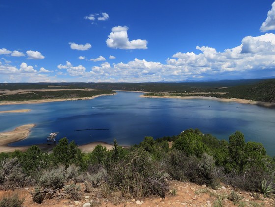 This reservoir is the 2nd largest body of water in Colorado and was created by the damming of the Dolores River. The reservoir is named for McPhee, Colorado, a company town founded by the New Mexico Lumber Company, that is now submerged under the reservoir. In 1927, the McPhee sawmill produced over half of Colorado's lumber. The recent drought in the southwest has lowered the depth of the waters and increased the chance of exposing some of the flooded town.