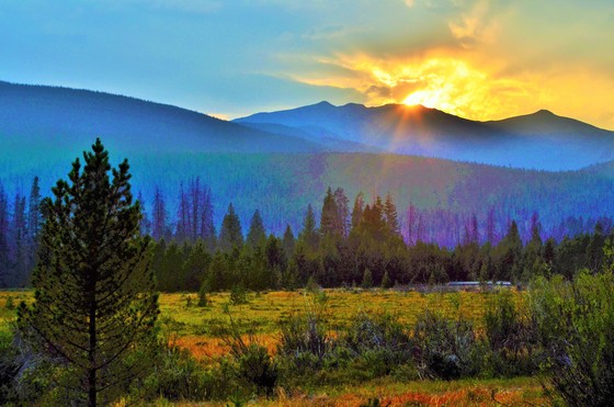 Sun setting in the mountains of Rocky Mountain National Park.