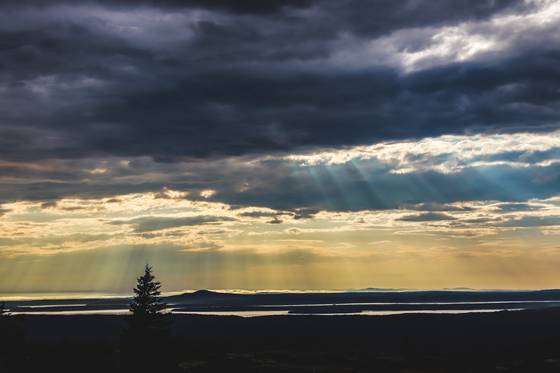 At dusk on top of Cadillac Mountain, you should see the descending sun shining through the clouds. It was an ethereal sight to see from a mountain top.
