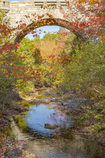 The combination of the carriage road bridge, the Fall colors, the water in the creek, the refections and the way this image composed itself told me I must photograph it.