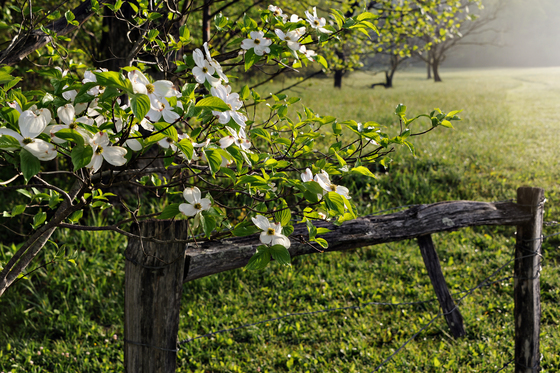 Blooming dogwoods along Cades Cove Loop Road in the Great Smoky Mountains National Park.