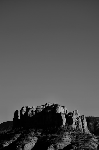 Shadows falling under a big sky on Cathedral Rock in Sedona.