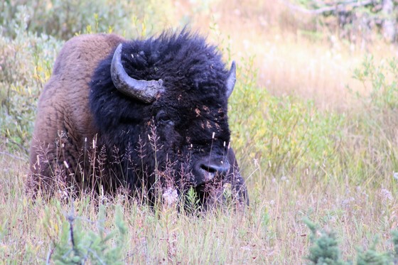 This Bison was hanging out of the side of the road watching traffic drive by.