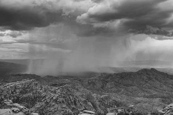 Monsoon storm develops over the windy point rest stop in the Santa Catalina mountains