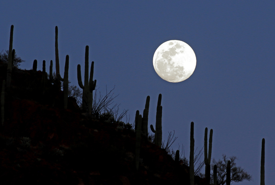 Full Moon rising over a hillside in the Saguaro National Park. I was shooting in a different area and then rushed to drive on the opposite side of mountain to catch the moon coming up over the hillside