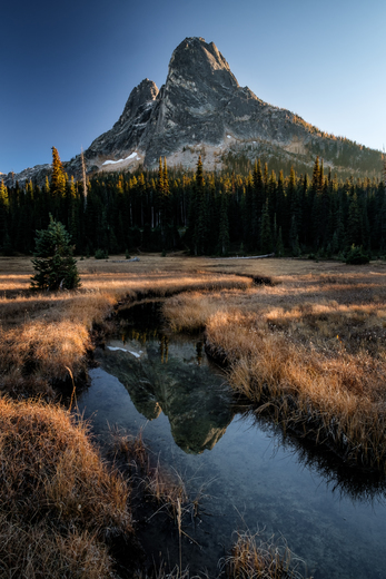 Taken near sunset on Washington Pass along the North Cascades Highway. There is a meadow up there that has amazing views to Liberty Bell Mountain and the streams are perfect foreground subject. This was likely our last really nice fall weekend.