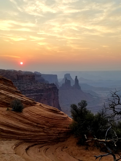 Morning Sunrise in California smoke haze Mesa Arch