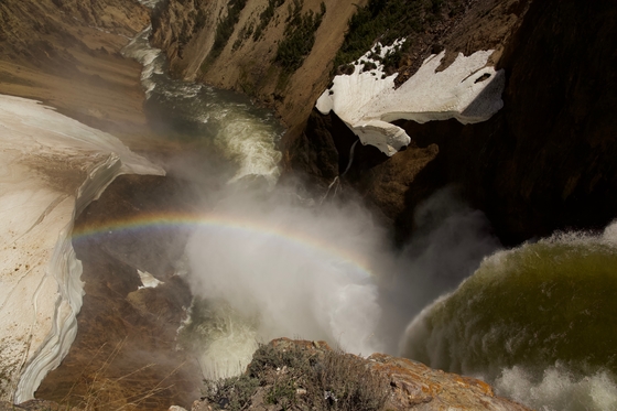 Lower falls thunders down to the river below, but not without making a rainbow!