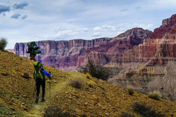 Backpacking down the Tanner Trail in the Grand Canyon with friends