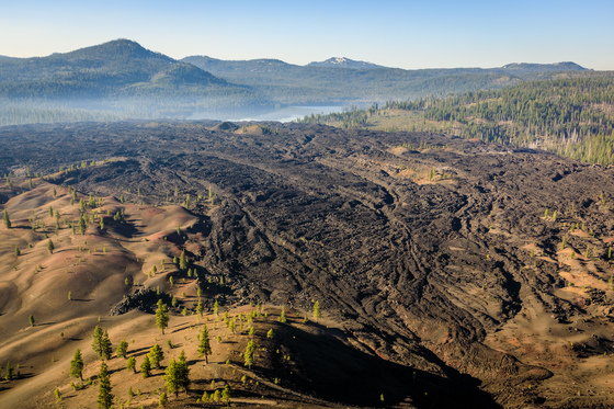 Tagged: lassen volcanic national park painted sand dune cinder cone shuxu volcano top fog lava bed peak lake mountain hill california tree pine colorful black conical spiral sunrise morning