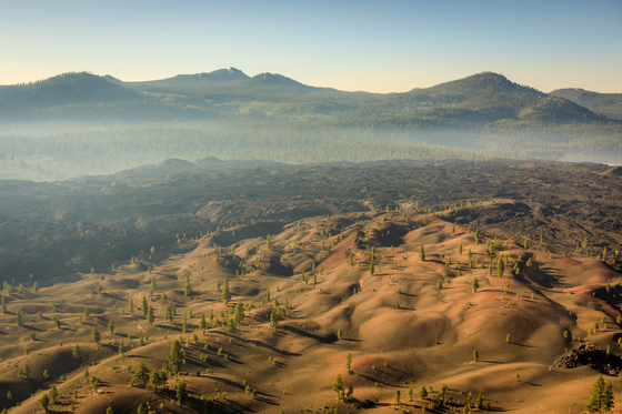 Tagged: lassen volcanic national park painted sand dune cinder cone shuxu volcano top fog lava bed peak lake mountain hill california tree pine colorful black conical spiral sunrise morning